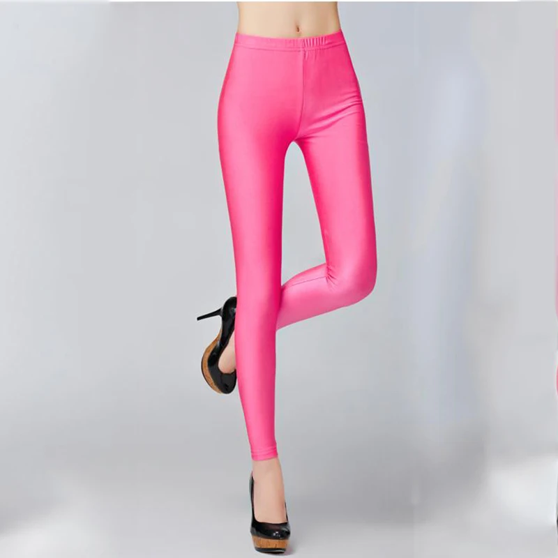 New 21 Colors Plus Size Fluorescent Color Women Leggings Elastic Leggings Spandex Multicolor Shiny Glossy Leggins Trousers For Girl