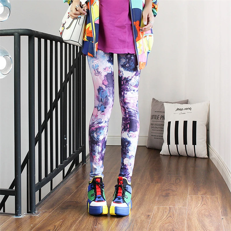 Promo VIIANLES Streetwears Polyester Sexy Leggings Graffiti Fashion Women Legging Digital Print Workout Fitness Pants Casual Trousers