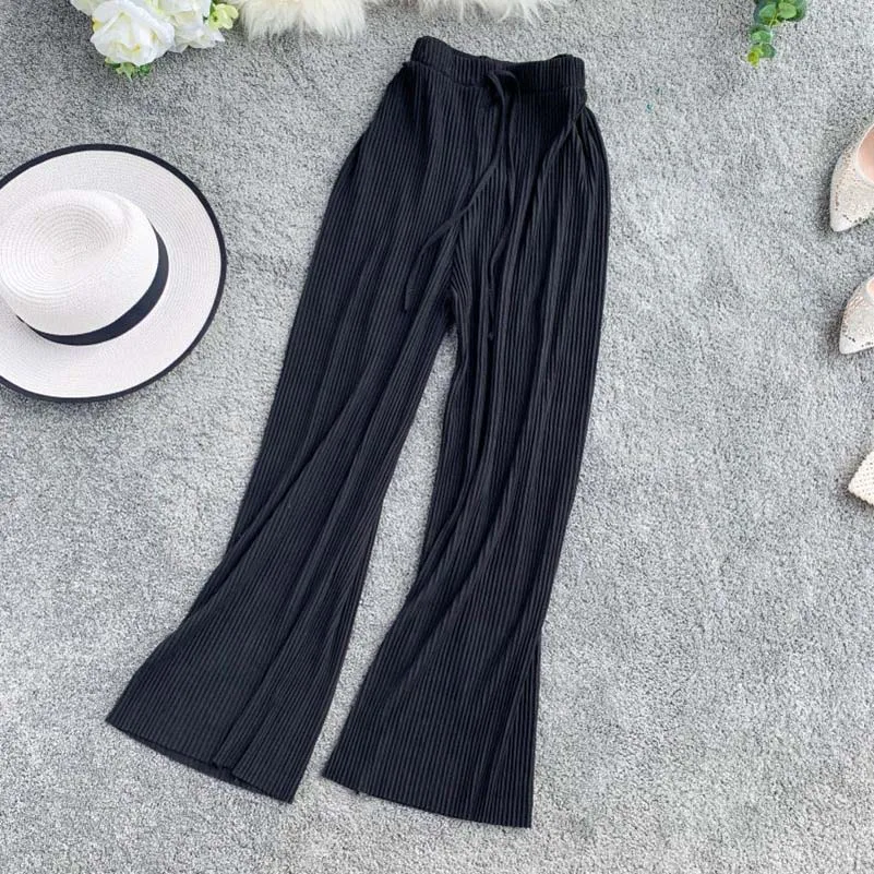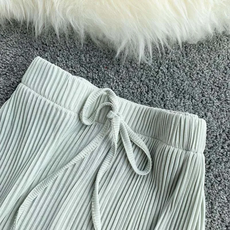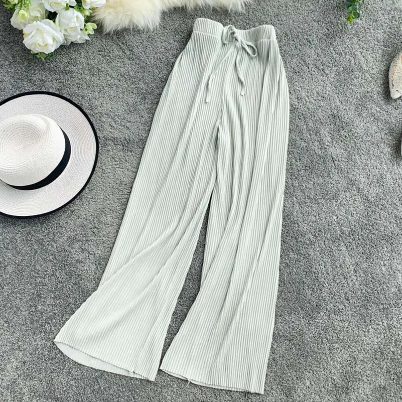 Best Offer 2019 Big Size Summer Women Chiffon Pleated Pants Casual Wide Leg Pant Female Ankle-Length Pants Ice Silk Trousers