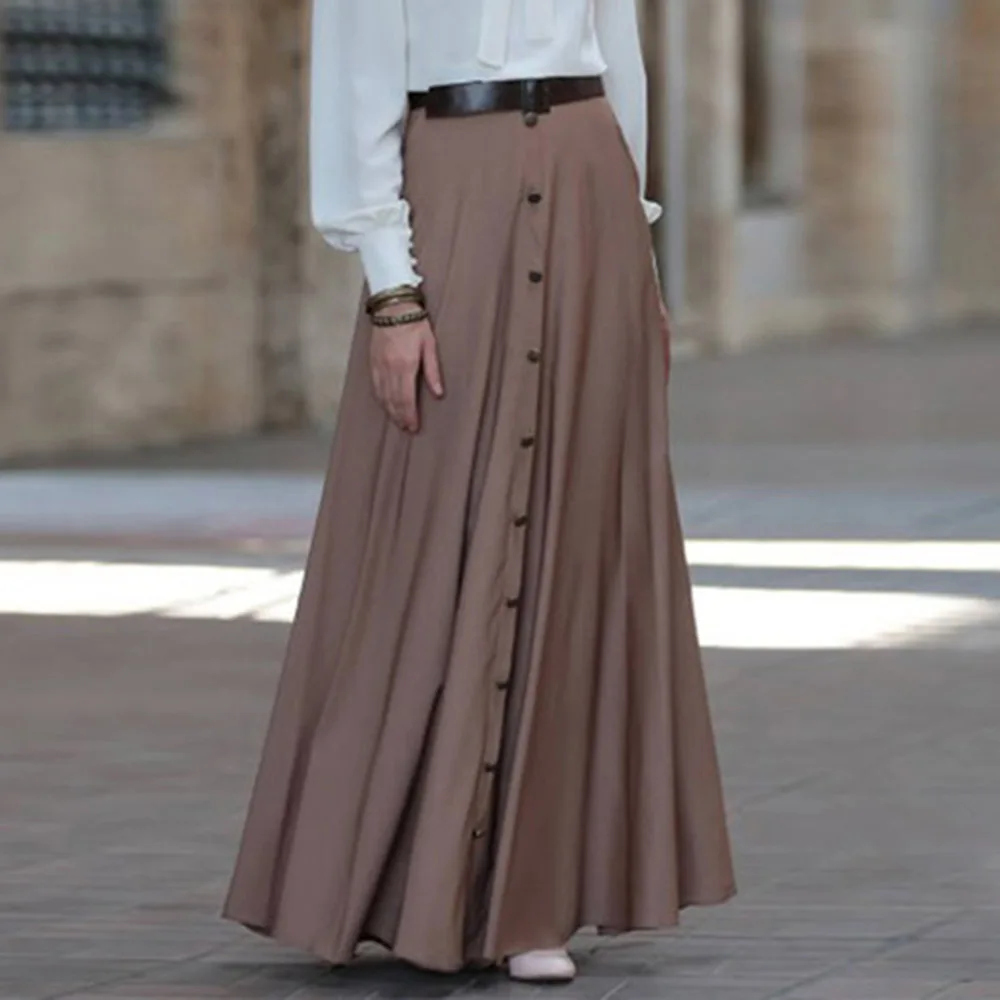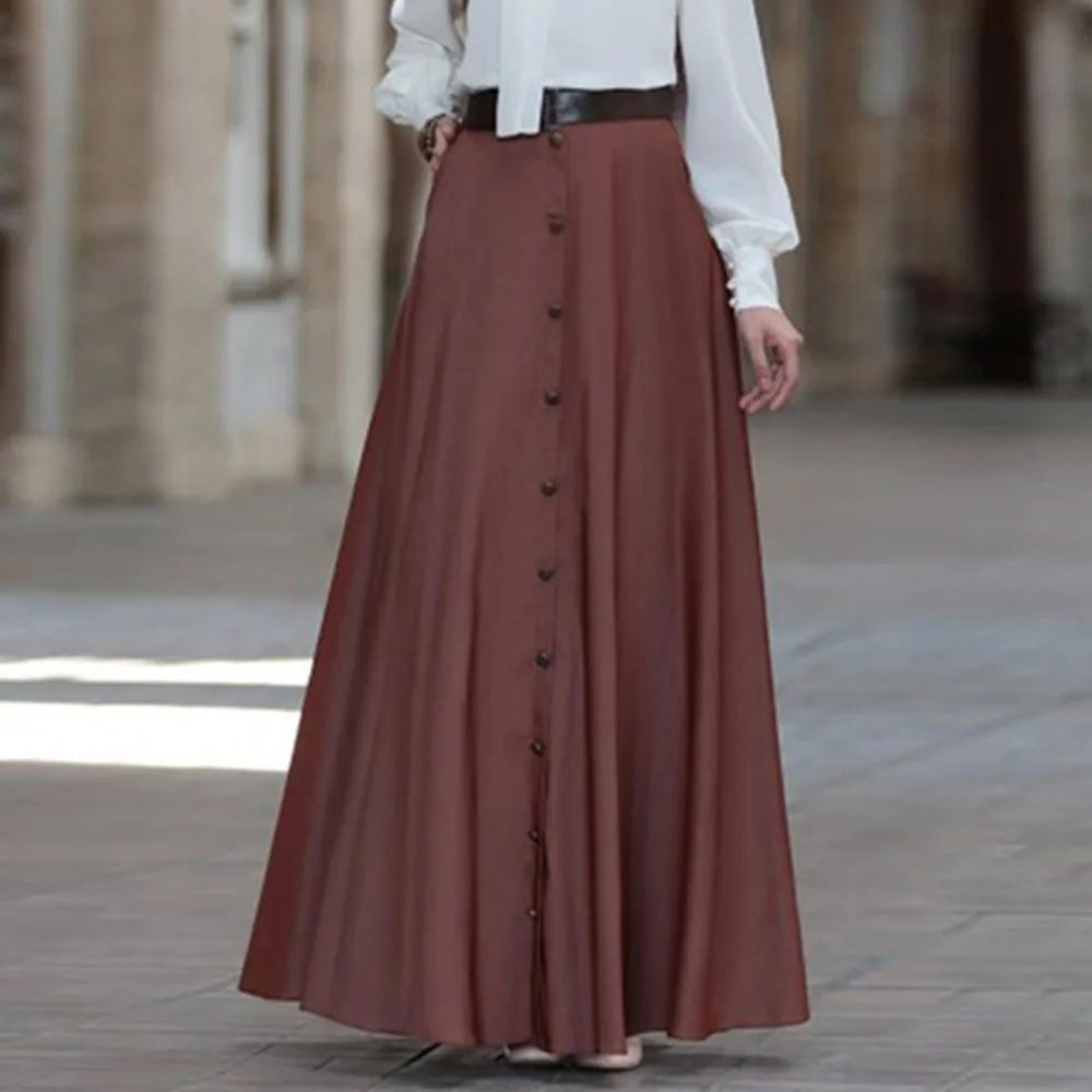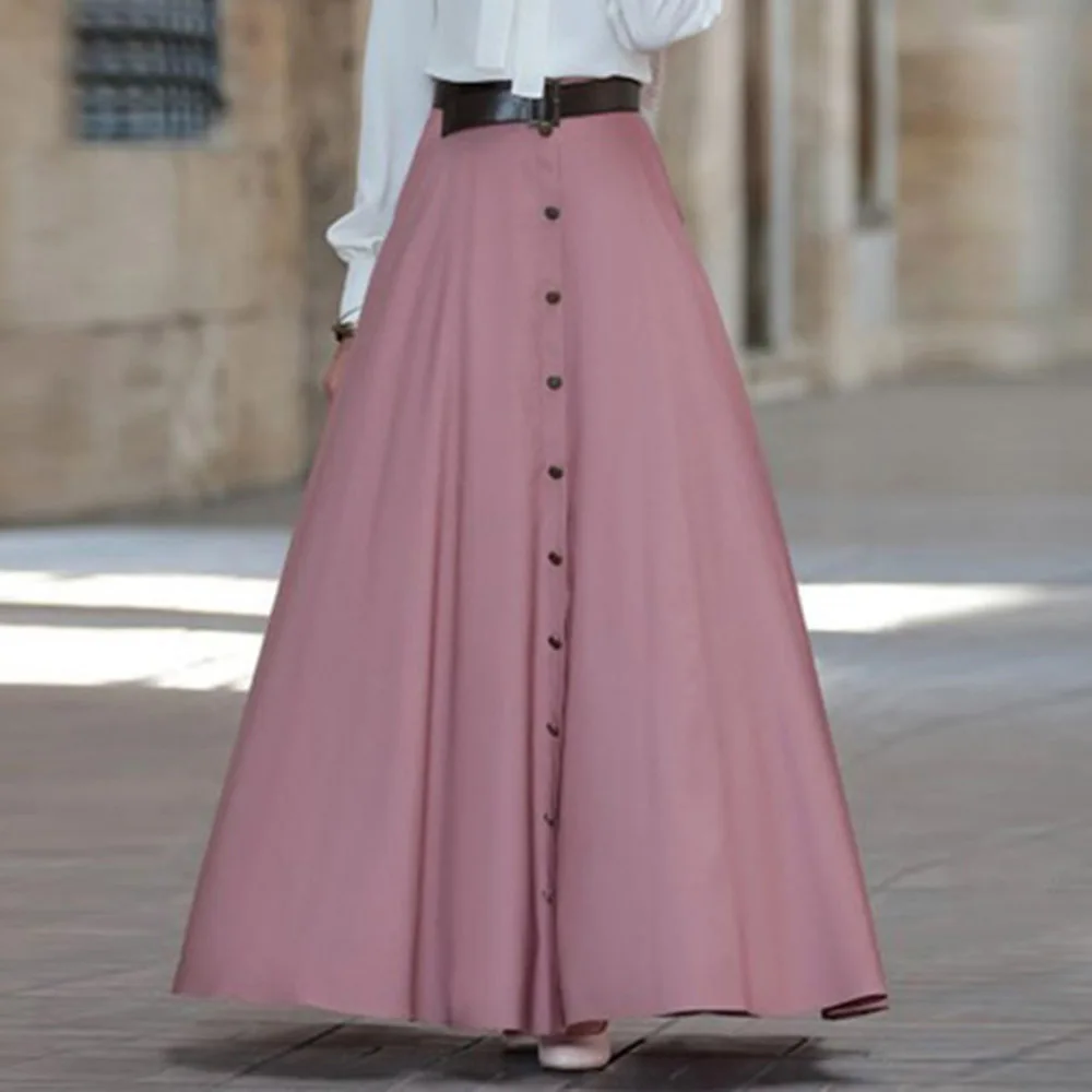 Best Offer Plus Size S-5XL Islamic Maxi Skirt Women Muslim Clothing Pink Vintage Blue Minimalist Elegant High Waist Skirts Long Spring 2020