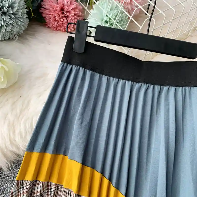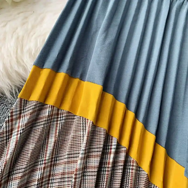 Sale 2019 autumn Plaid High Waist Vintage Long Skirt Autumn Winter Bottoms Long Skirts A-line Patchwork Panelled Pleated Skirts