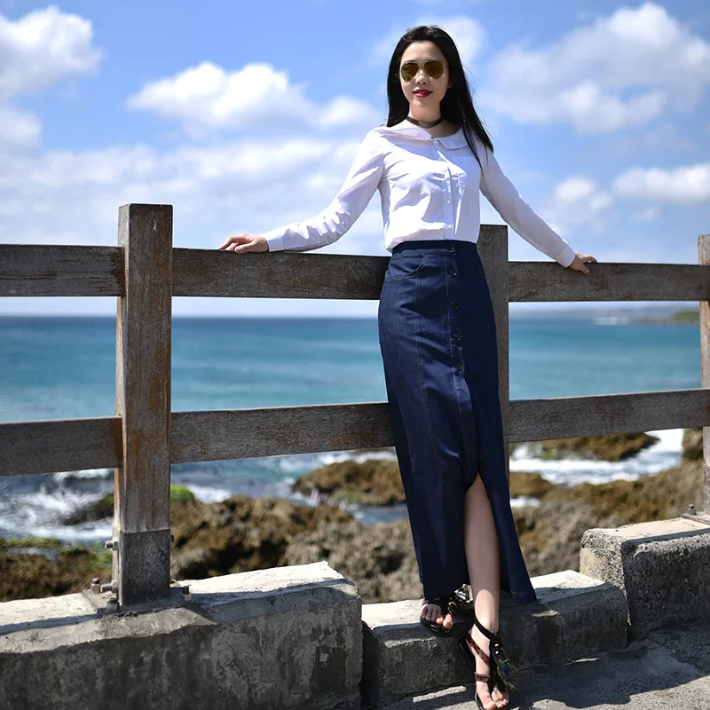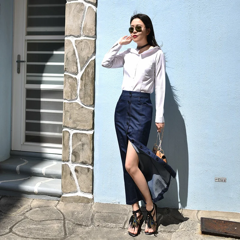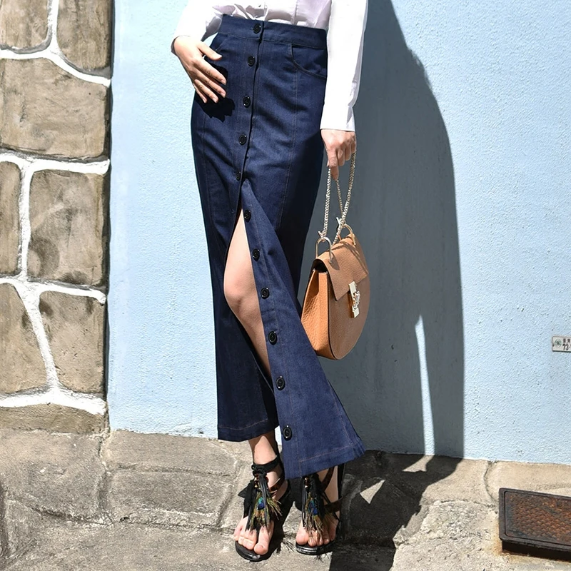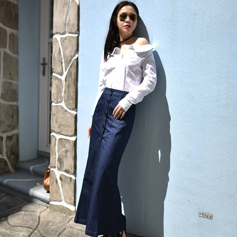 New Free Shipping 2019 Fashion Stretch Long Maxi Denim Jeans Plus Size XS-XL Mermaid Style Summer Single-breasted Skirt For Women