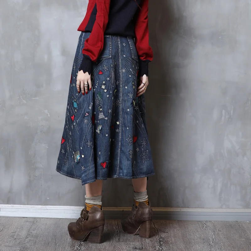 Get this Free Shipping 2019 New Fashion Spring Autumn Denim All-match Vintage Jeans Long Maxi Skirt For Women S-L Embroidery A-line Skirt with limited time discount by pressing the button below