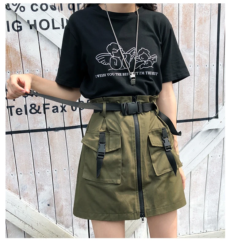 Get this NEW women's skirt summer high waist Korean A-line black Japanese style tooling skirt super hot skirt tide fashion woman skirts with limited time discount by pressing the button below