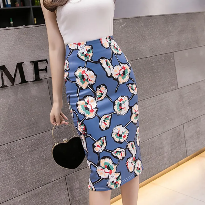 Best Offer Women's Casual Ladies Print Skirt Sexy High Waist Split Skirt Fashion 2019 Slim Bodycon Skirt