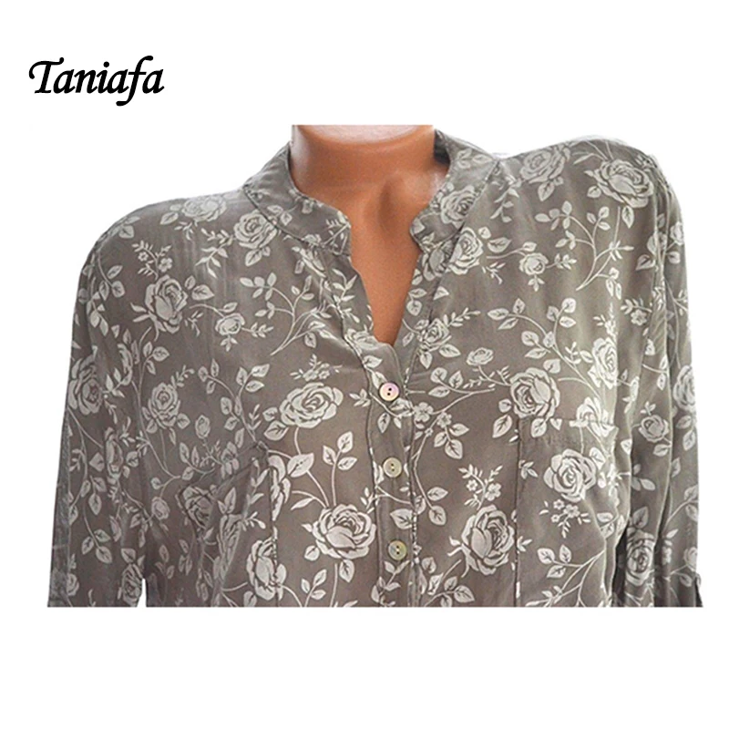 Best Offer Taniafa New Arrival Women Shirt Long Sleeve V-Neck Button Print Casual Sexy Shirts Career Fashion Office T Shirts Tops Plus Size