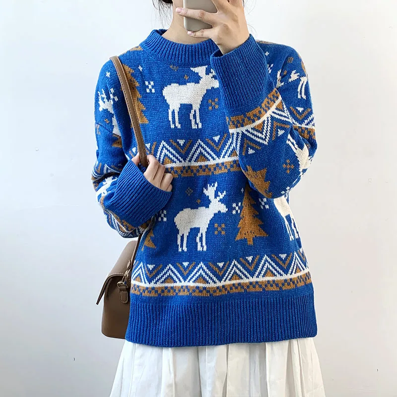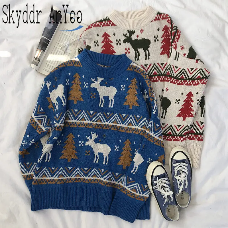 Promo Fashion Warm Xmas Sweater Women Pullover Sweater With Deer Elk Women Winter Christmas Sweater Knitted Thick Ladies Pull Femme